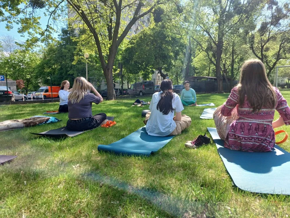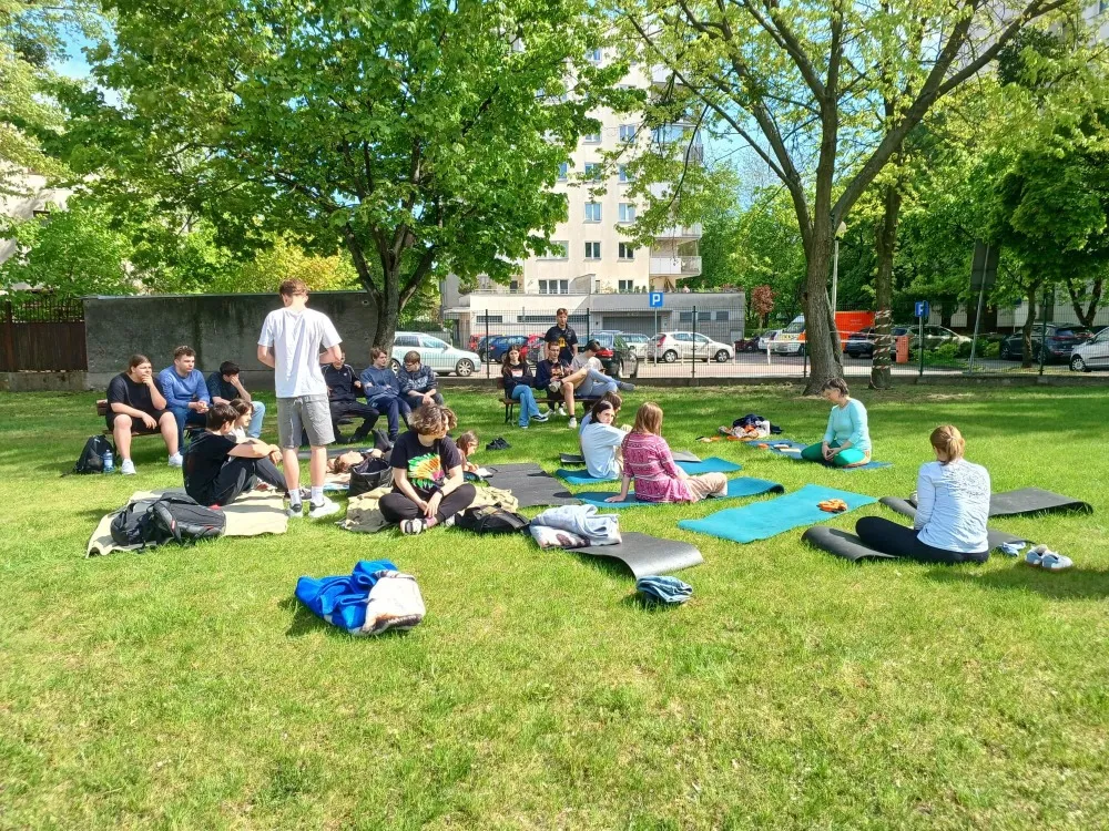 Warsztaty zawierały jedną godzinę praktyki asan oraz jedną godzinę wykładu i pranayamę. Słońce okrasiło spotkanie przyjemnym ciepłem. Ruch zawsze jest dobry - każdy. Zachęcamy zatem do aktywnej Majówki , najlepiej na świeżym powietrzu.