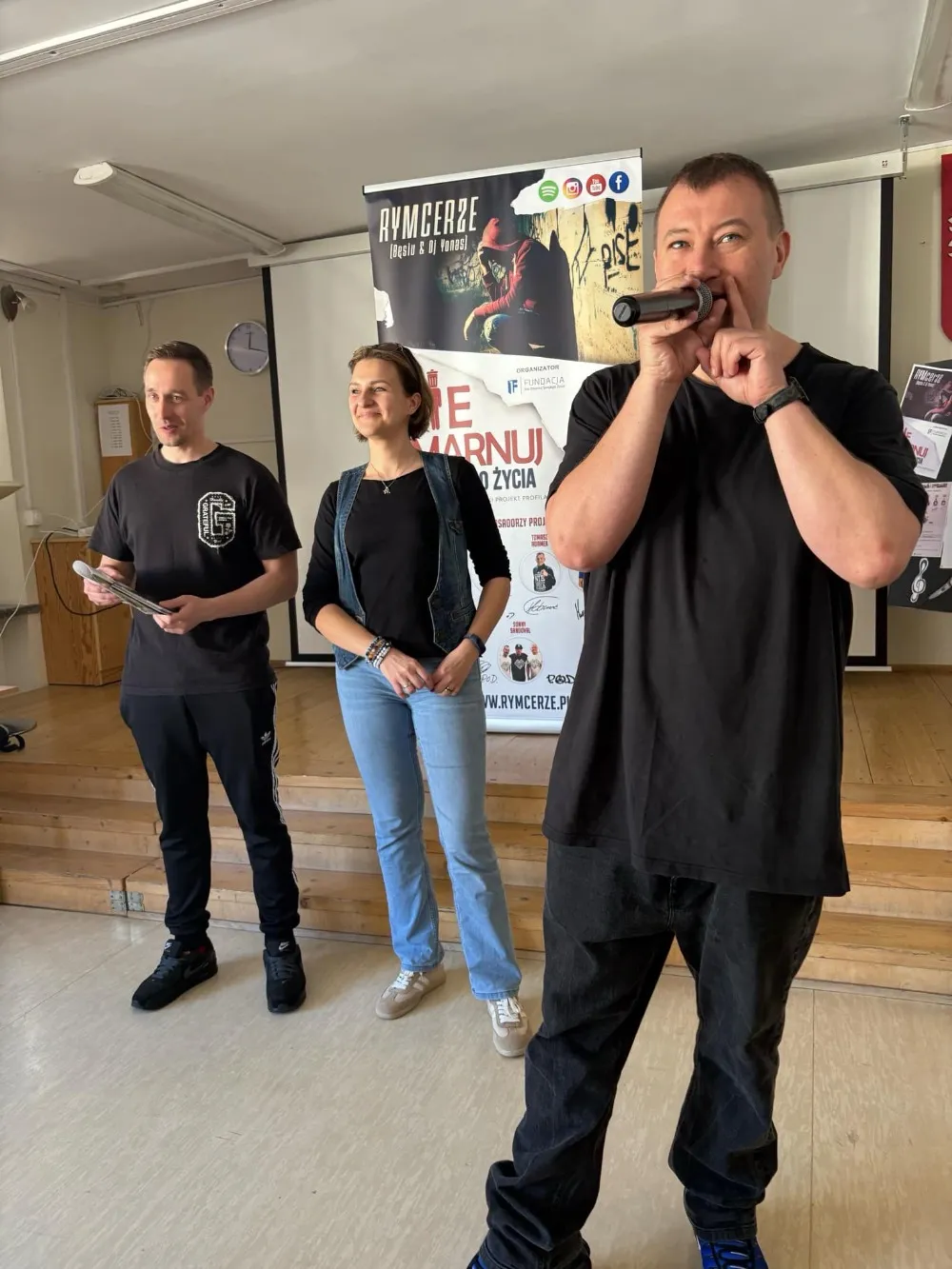 W naszej szkole odbyły się niezwykłe zajęcia profilaktyczne w ramach projektu „ NIE ZMARNUJ SWOJEGO ŻYCIA „ przeprowadzone przez RYMcerzy Dj Bęsia i Dj Yonasa. Program "Nie zmarnuj swojego życia" to inspirujący projekt skierowany do młodzieży, mający na celu przeciwdziałanie uzależnieniom oraz motywowanie do podejmowania mądrych i odpowiedzialnych wyborów.