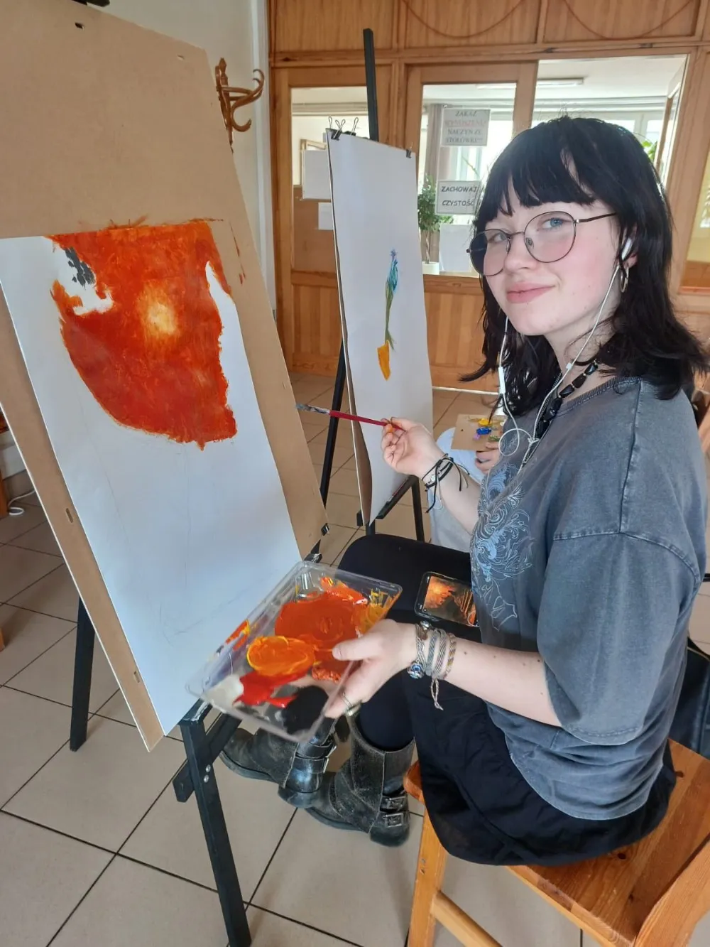 U nas Pani Estera przygotowała Warsztat Malarski, Quiz wiedzy o sztuce oraz mini warsztat Arteterapeutyczny "Granice".