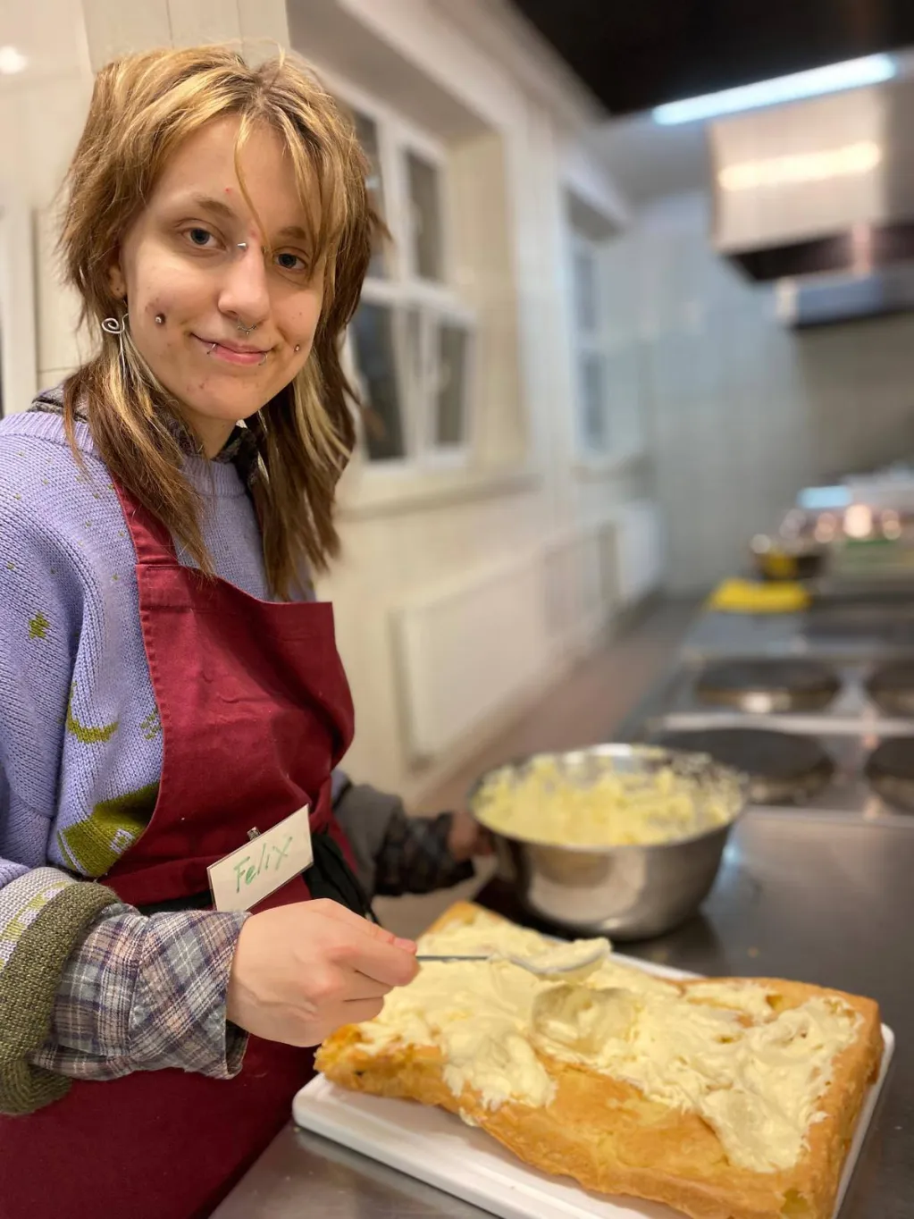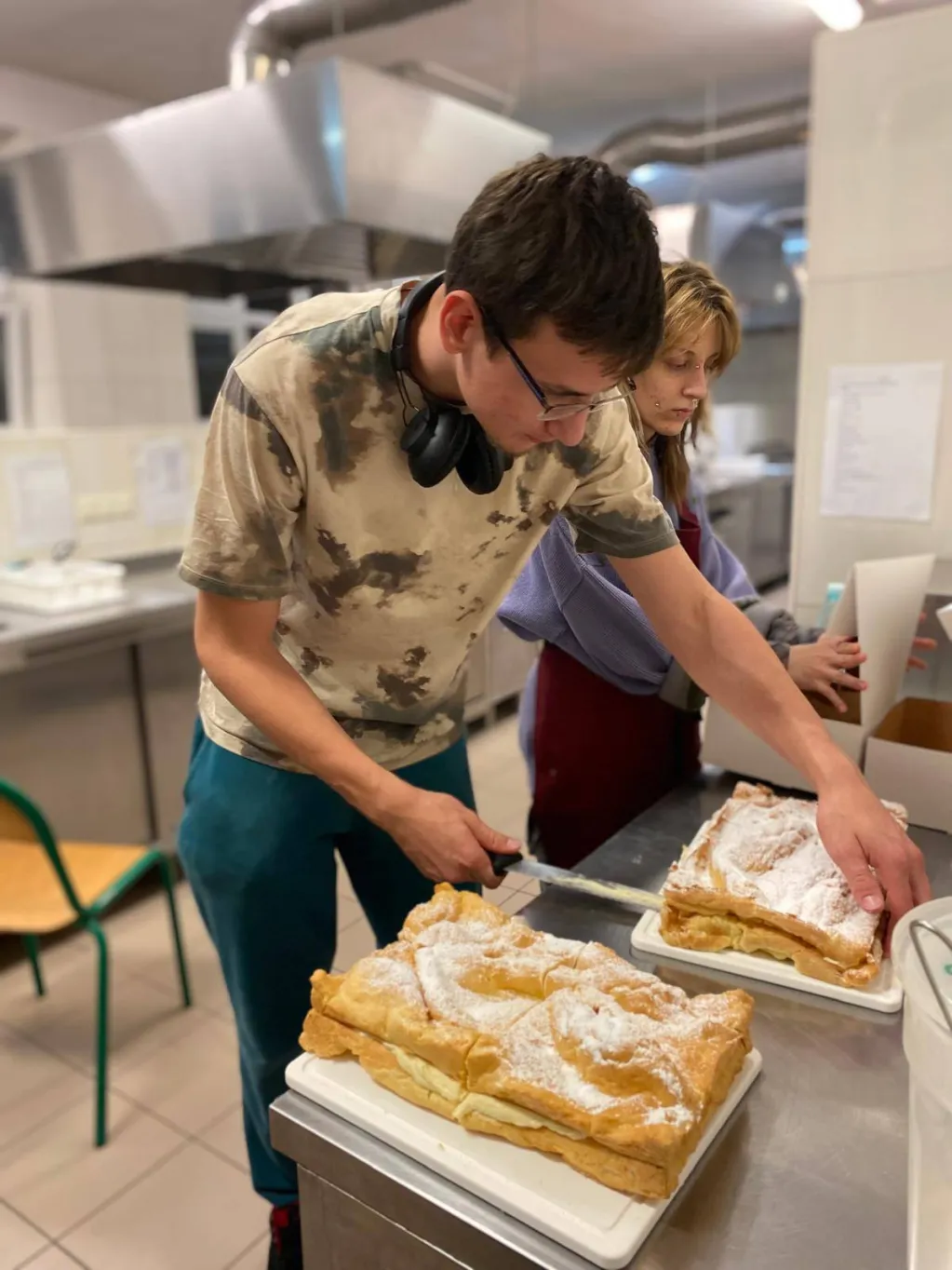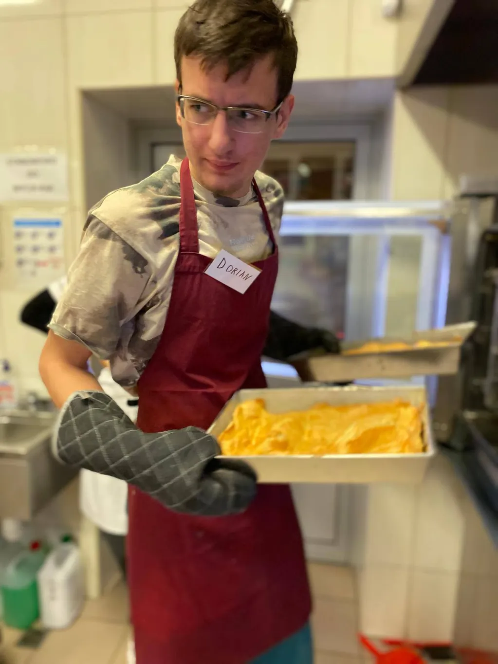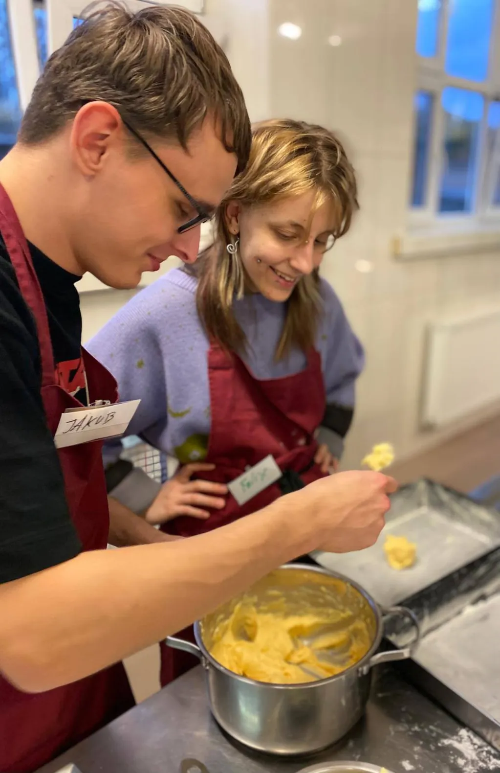 Na jednych z zajęć w ramach kursów kulinarno-krawieckich nasi podopieczni mieli okazję doskonalić swoje umiejętności kulinarne, przygotowując tradycyjną karpatkę . Całość – od przygotowania ciasta po krem – została wykonana samodzielnie przez uczestników, zgodnie z instrukcją i pod okiem doświadczonych specjalistów.
