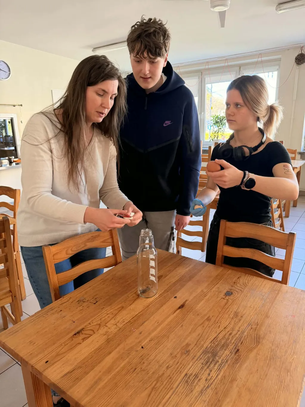 W ramach zajęć przeprowadzono eksperyment z wykorzystaniem kwasu octowego, badając jego wpływ na skorupkę jajka. Uczniowie obserwowali zachodzące reakcje oraz wyciągali wnioski dotyczące zmian struktury materiałów pod wpływem substancji chemicznych.