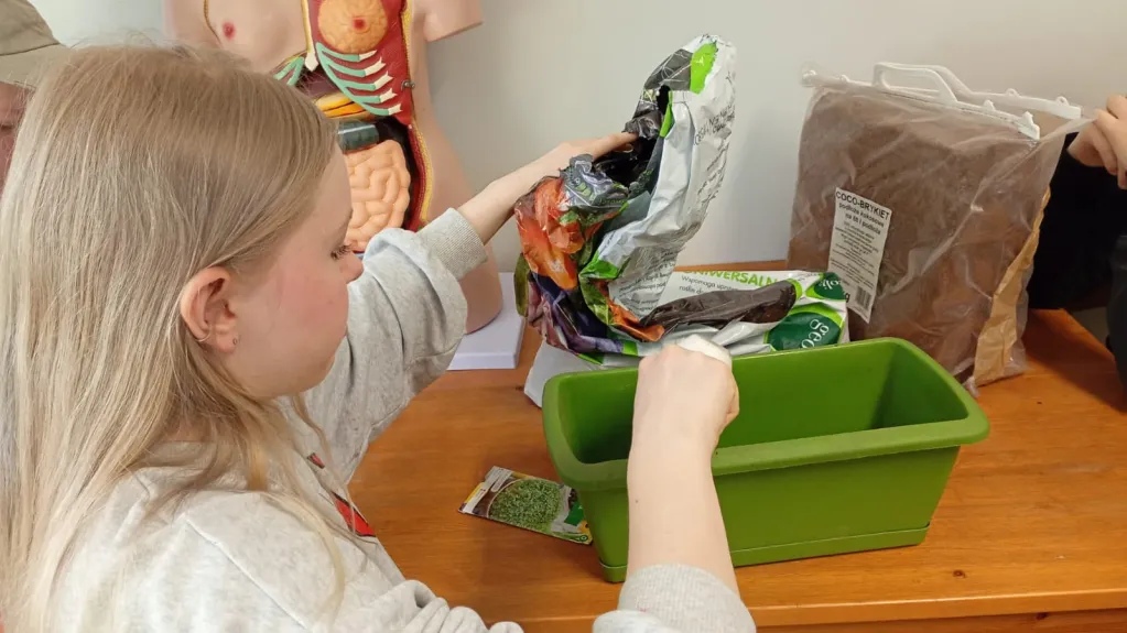 W szkole odbyły się warsztaty przyrodnicze, podczas których uczniowie zajęli się pielęgnacją roślin oraz dbaniem o tzw. „oazy zieleni” znajdujące się w szkolnych przestrzeniach.