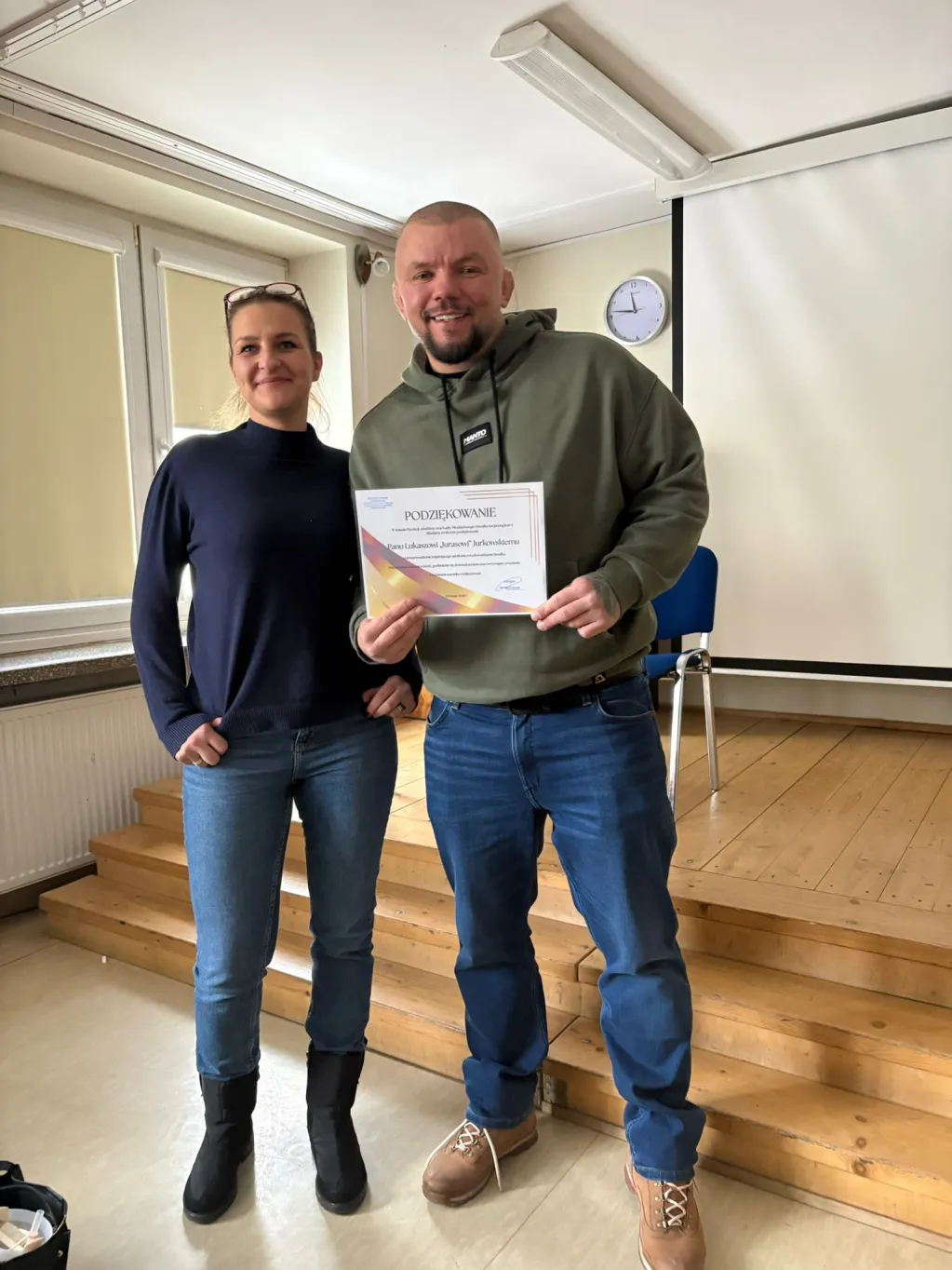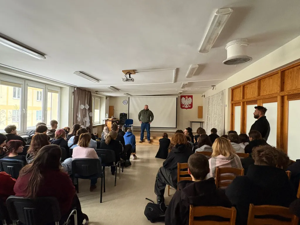 Młodzież miała dziś wyjątkową okazję poznać Łukasza „Jurasa” Jurkowskiego – mistrza sportów walki, komentatora i prezentera sportowego znanego m.in. z Ninja Warrior Polska oraz organizacji KSW. Podczas spotkania opowiedział o swojej drodze do sukcesu, doświadczeniach zdobytych na przestrzeni lat oraz o wyzwaniach, z jakimi mierzył się zarówno w sporcie, jak i w pracy medialnej.