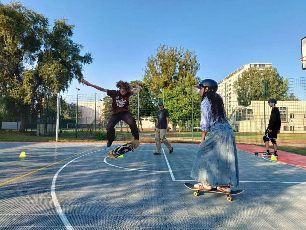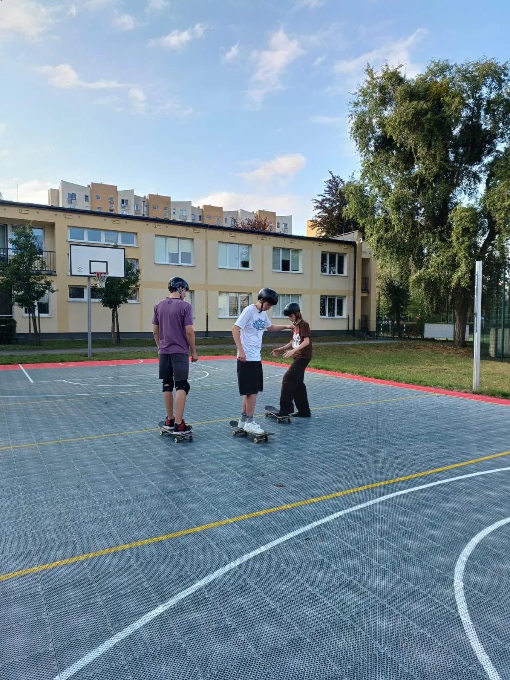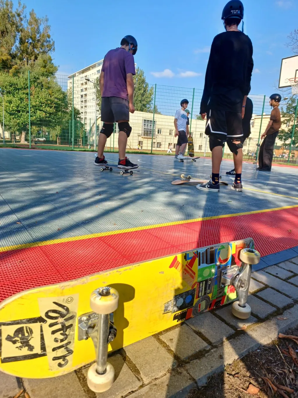 Pierwsze zajęcia skateboardowe za nami... młodzież miała okazję zapoznać się ze sprzętem i podstawowymi zasadami bezpieczeństwa. Instruktor, pan Filip, pokazał, jak prawidłowo stawać na desce, utrzymywać równowagę i wykonywać pierwsze, proste skręty. Uczestnicy szybko złapali podstawy i zaczęli czerpać radość z jazdy. Takie zajęcia to nie tylko świetna zabawa, ale też sposób na poprawę koordynacji, wzmocnienie kondycji i budowanie pewności siebie